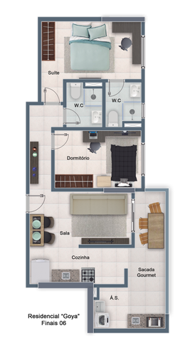 Localizado em um bairro com estrutura consolidada e tudo por perto, na Guilhermina, o Francisco Goya Residence, com sua arquitetura contemporânea, possui apartamentos com 02 dormitórios/01suite e sacada gourmet com acesso pela cozinha.